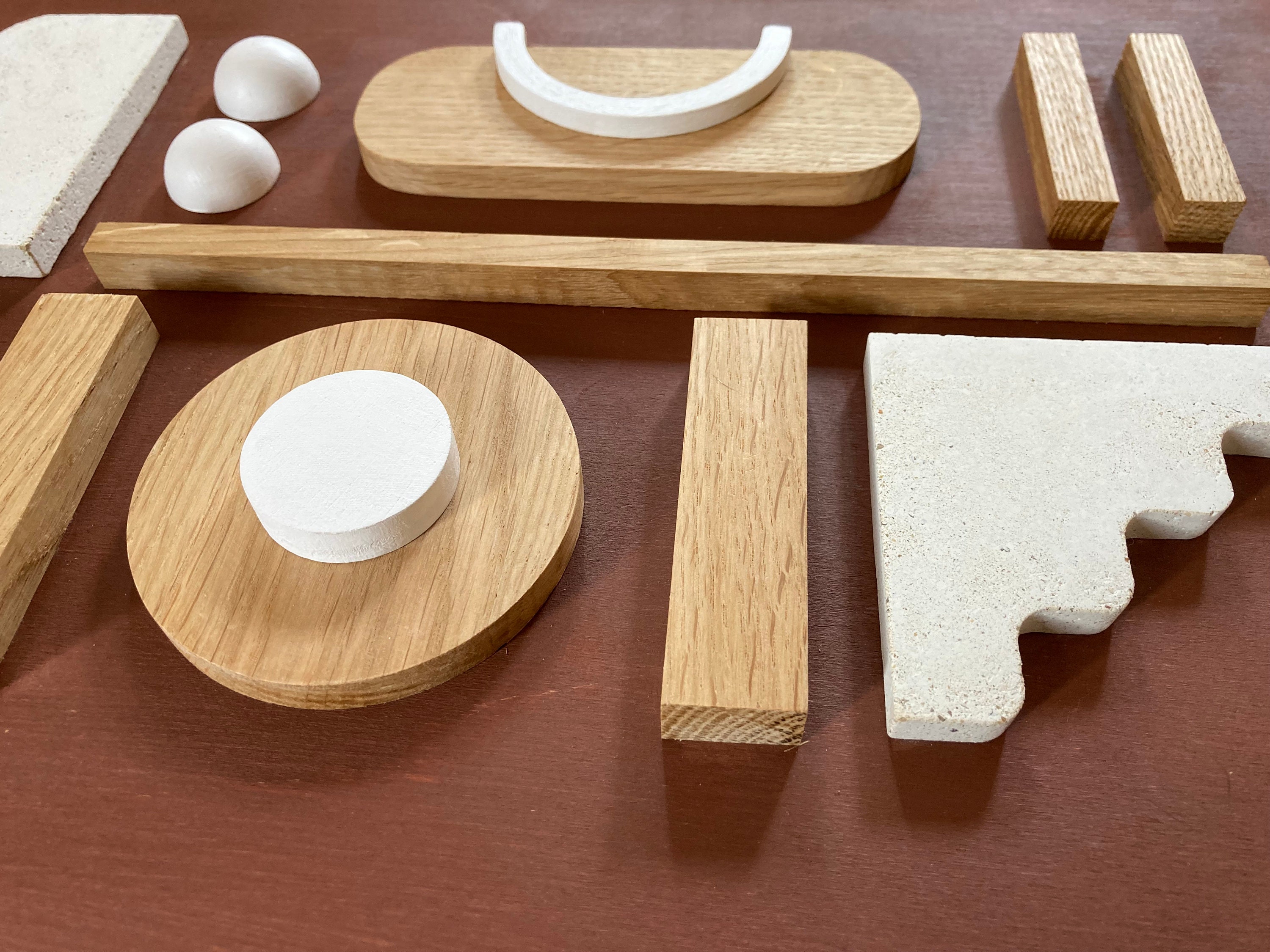Je privilégie le bois de chêne massif pour de nombreux produits car la beauté de son veinage et sa solidité en font, pour moi, le roi des bois même si d'autres essences sont aussi magnifiques. Pour les créations "nature" j'utilise aussi différents végétaux et des branches de châtaignier, de noisetier et de bouleau qui proviennent de chez moi.