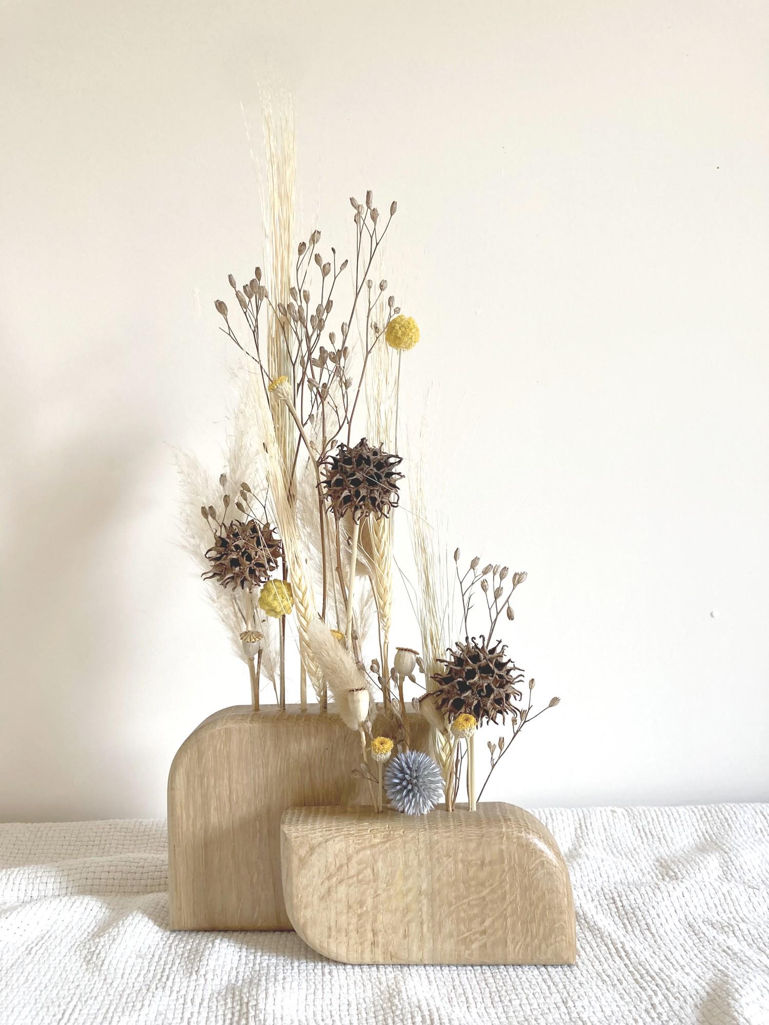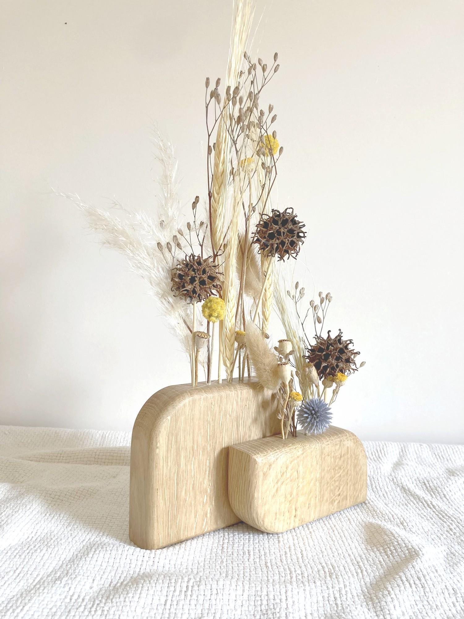 Dried flower holder - flower frog - made of oak wood - handmade in France
